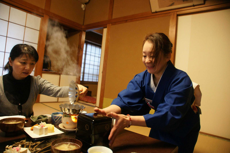Còn nếu bạn không có điều kiện để ở ryokan, bạn có thể chọn những nhà hàng Nhật truyền thống thay thế. Tuy nhiên nếu bạn không thích những nơi quá đắt, bạn có thể đi đến các nhà hàng Nhật ở cửa hàng bách hóa, ở đấy cũng có các nakai mặc kimono truyền thống chào đón bạn.