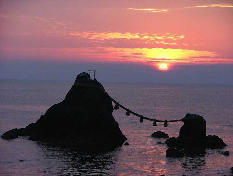 Có vị trí ở gần biển Futami, tỉnh Mie Nhật Bản. 2 hòn đá lớn nhỏ nối bởi 1 sợi dây có tên gọi là hòn Phu Thê (Meoto Iwa). Những hòn đá này được xem là hiện thân của kami, linh hồn tối cao trong đạo Shinto. Hòn to có tên gọi là Izanagi (người chồng) và hòn nhỏ tượng trưng cho Izanami (người vợ). Đạo Shinto tin rằng sự kết hợp của 2 hòn đá này sẽ là cái nôi khai sinh ra vạn vật trên cõi trời đất.