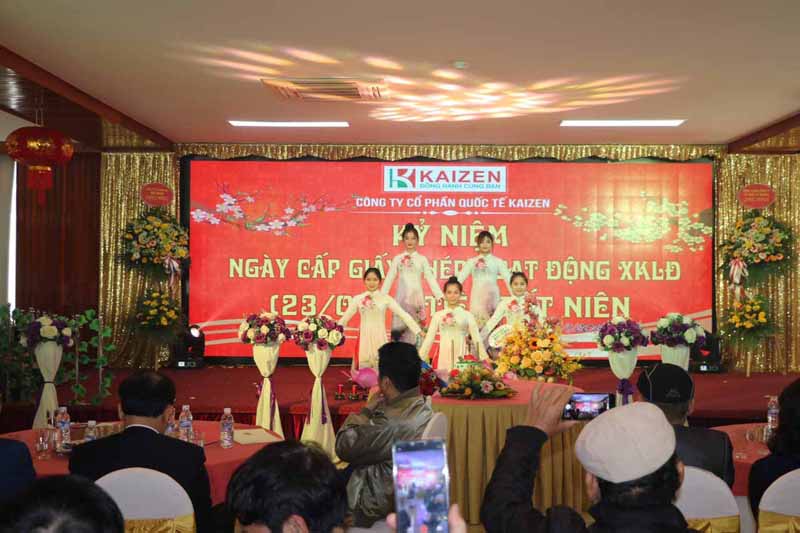 Chương trình Kỷ niệm một năm ngày nhận giấy phép xuất khẩu lao động kết thúc tốt đẹp trong niềm vui và sự phấn khởi của tất cả khách mời cùng toàn thể cán bộ nhân viên công ty. Buổi lễ là một dấu mốc quan trọng trên chặng đường phát triển của công ty cũng là lời cảm ơn chân thành đến các ban, ngành, các quý khách hàng đã dành cho Kaizen trong suốt thời gian vừa qua.