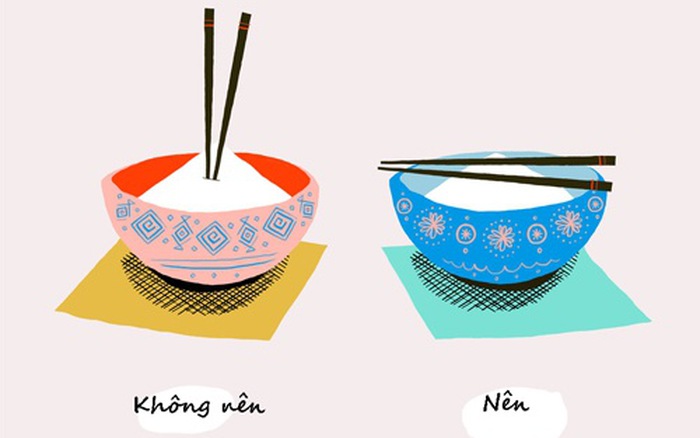 Người Nhật không bao giờ cắm đũa lên thức ăn và đặt biệt là lên bát cơm vì chỉ trong đám tang người ta mới cắm đũa lên bát cơm và đặt lên bàn thờ. Không được dùng đũa để chuyền thức ăn vì trong đám tang người ta dùng đũa để chuyền những mảnh xương còn sót lại sau khi hỏa táng.