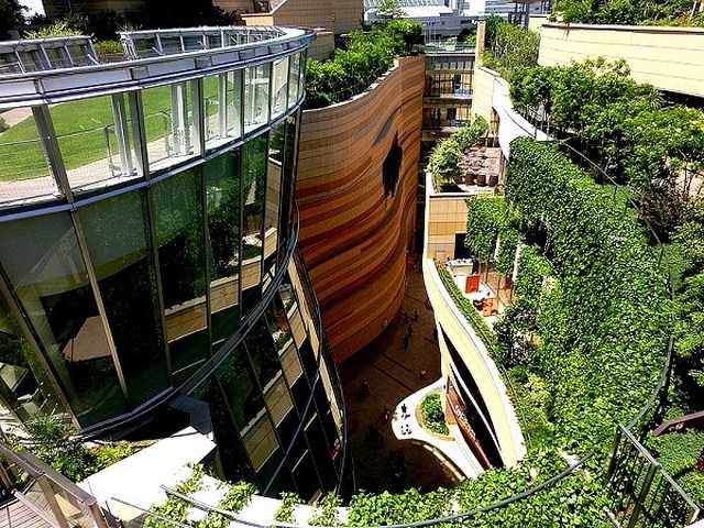 Nơi đây kết hợp nhiều tiện ích của cuộc sống hiện đại với môi trường tự nhiên bằng một cấu trúc được thiết kế thanh thoát, mềm mại. Cả công trình đón lấy những con đường rồi tăng dần đến 8 tầng lầu một cách tự nhiên mà không hề khiến người đi có cảm giác như đi lên một tòa nhà cao tầng.