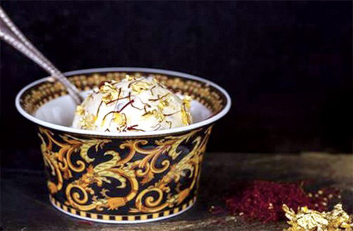 Món kem đắt nhất thế giới này được làm từ vali, kem tươi, nghệ tây và nấm đen. Ngoài những nguyên liệu phổ biến, món kem này còn được bao phủ thêm lớp vàng mỏng ở ngoài khiến cho món kem trở thành đắt nhất thế giới. Món kem tráng miện này được ra đời nhằm đáp ứng nhu cầu của giới thượng lưu ở Dubai.