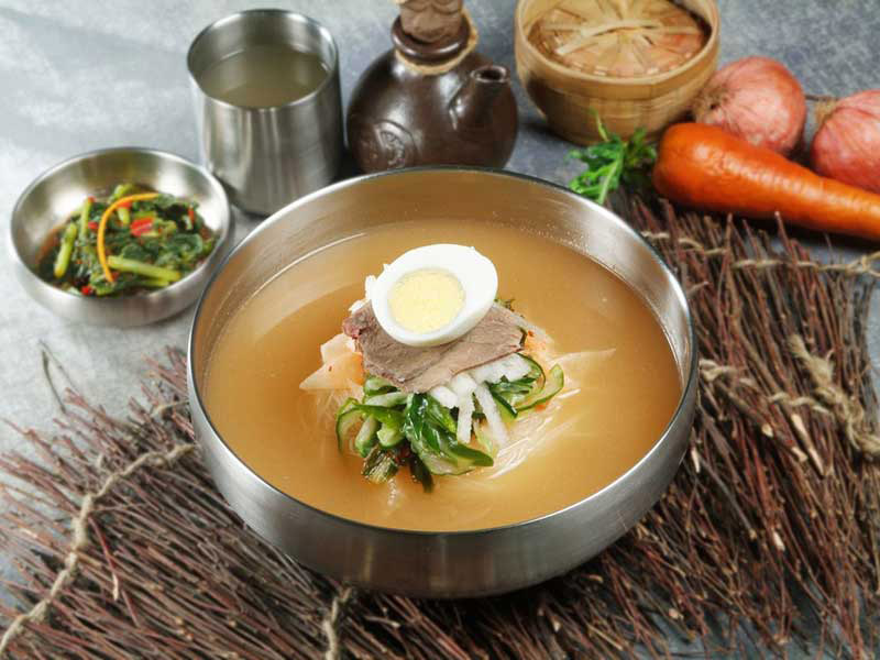 Nói đến ẩm thực Hàn Quốc, có rất nhiều du khách quốc tế sẽ nhớ ngay đến món mì lạnh Hàn Quốc – Naengmyeon. Đây là món ăn phổ biến khắp Hàn Quốc, món ăn thường xuyên được dùng trong các gia đình đặc biệt là vào mùa hè. Naengmyeon được nấu từ những sợi mì nhỏ làm từ bột khoai tây hoặc kiều mạch.