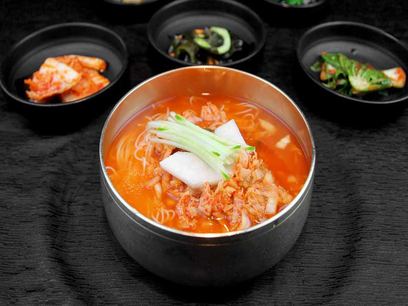 Đây là một trong những món ẩm thực Hàn Quốc truyền thống, nổi tiếng ở các tỉnh phía bắc của Hwanghaedo và vùng Puongando. Mì được trộn với nước dùng đã được ướp qua đá lạnh cùng kim chi, rong biển, dưa chuột và thêm một số gia vị như dầu mè, hạt vừng.