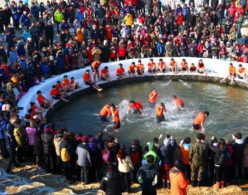 Từ ngày 4 đến 26/1 là thời điểm diễn ra lễ hội câu cá hồi trên băng tại huyện Hwacheon, tỉnh Gangwon. Đây là vùng hẻo lánh, băng giá suốt mùa đông và con sông tại đây được phủ một lớp băng dày. Lễ hội là dịp du khách có thể thử câu cá, bắt cá bằng tay, chơi trượt tuyết, bóng băng, đắp tượng tuyết...