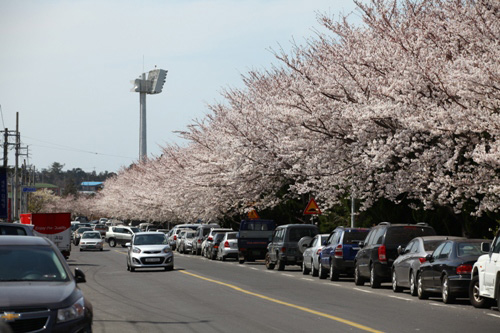 Thời tiết ấm áp đầu năm khiến cho những bông hoa khắp nơi đua nở. Đây là điều kiện lý tưởng để đảo Jeju tổ chức lễ hội hoa anh đào. Khu vực trung tâm thành phố Seogwipo và khu liên hợp thể thao là nơi những cây hoa anh đào đại thụ của Jeju nở rộ. Cánh của hoa anh đào trên những cây đại thụ này cũng được đánh giá là to và đẹp nhất. Tuy nhiên, chúng chỉ nở rộ trong 2 đến 3 ngày trong thời gian diễn ra lễ hội vào tháng 4. Đến đây, du khách sẽ được lắng nghe tiếng nhạc êm dịu khi tản bộ trên đại lộ hoa anh đào rực rỡ của đảo Jeju.
