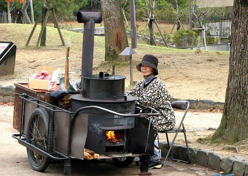 Vào mùa đông, bạn sẽ thấy những chiếc xe đẩy sắt kiểu cũ với một lò than to xuất hiện ở khắp mọi nơi trên đường phố Nhật Bản. Thậm chí, sẽ không có gì đáng ngạc nhiên ở Nhật Bản nếu bạn thấy những chiếc xe tải bán rong yaki imo cùng với những chiếc loa rất to như những người bán kem vẫn thường làm. Nhưng thay vì bật bản “pop goes the weasel” (bản nhạc quen thuộc của những người bán rong) hay bài hát để thu hút những đứa trẻ thì chiếc xe tải này chỉ đơn thuần phát ra tiếng “yaki imoooooooooooouuuuuu, yaki imoooooouuuuu” (tiếng rao bán khoai).