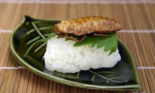 Bản thân món sushi đã rất khó ăn đối với những người không phải người Nhật bởi có nhiều loại sushi sử dụng thịt sống làm nguyên liệu. Nhưng sushi côn trùng còn kinh dị hơn thế nhiều… Ngày này côn trùng đã trở thành một món ăn phổ biến ở nhiều nước trên thế giới như Trung Quốc, Campuchia và Nhật Bản cũng không nằm ngoài ngoại lệ. Họ cũng có nhiều món ăn sử dụng côn trùng, trong đó phải kể đến món sushi côn trùng.