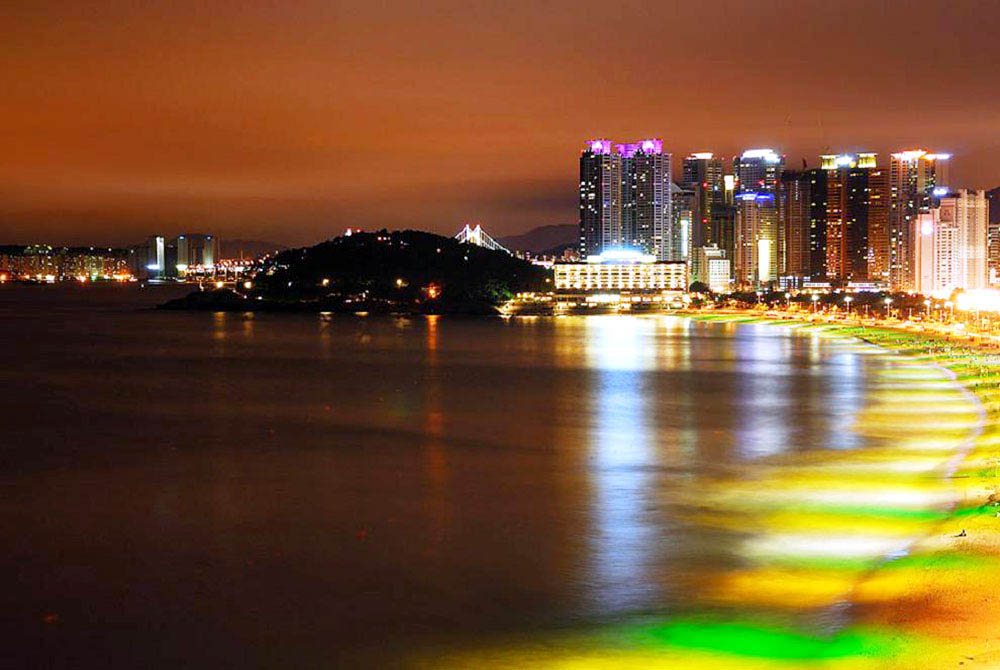 Bãi biển Haeundae với ánh sáng đầy màu sắc vào ban đêm