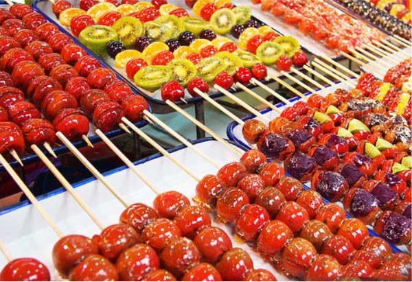 Những viên kẹo hồ lô màu đỏ tươi, được phủ lớp đường ngọt bên ngoài và xếp thành từng xiêng là món ăn vặt Đài Loan mà chúng ta thường thấy trong các phim truyền hình xứ Đài. Đây còn là món ăn quen thuộc gắn liền với tuổi thơ của người dân nơi đây.