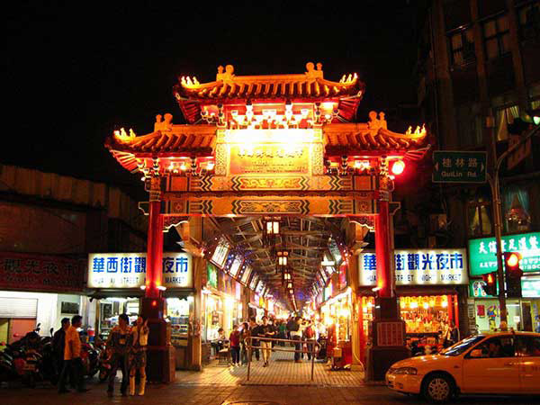 Huaxi là khu chợ đêm du lịch đầu tiên xuất hiện ở Đài Loan nên rất nổi tiếng. Du khách mới đặt chân đến khu chợ đêm Huaxi sẽ cực kỳ ấn tượng bởi ngay từ lối vào khu chợ Huaxi là công trình mang đậm nét kiến trúc truyền thống của người Trung Hoa. Đó là chiếc cổng chào thiết kế khá hoành tráng và được tô điểm bởi những chiếc đèn lồng đỏ xinh xắn, rực rỡ kéo dài xuyên suốt khu chợ.
