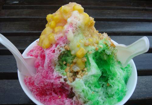 Bạn có thể tìm thấy món tráng miệng thú vị (nếu được đựng trong bát, thì nó thường có hình chóp núi và tất cả những nguyên liệu đáng yêu này được giấu dưới những lớp đá bào nên rất thú vị khi phải “đào bới” để lấy được những miếng ngon phía dưới) và nhiều màu sắc này có ở khắp mọi nơi trong thành phố như Trung tâm ăn uống Maxwell Road nổi tiếng ở Khu Chinatown.