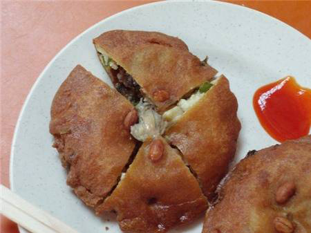 Loại bánh này có biệt danh là UFO vì nó có hình dạng gần giống như chiếc đĩa bay. Bánh được làm từ bột với nhân bằng thịt sò, thịt lợn băm nhỏ, tôm rồi chiên lên thành bánh rán. Bánh ngon nhất khi ăn với một chút tương ớt và thêm một cốc nước mía lạnh nữa thì thật tuyệt vời.