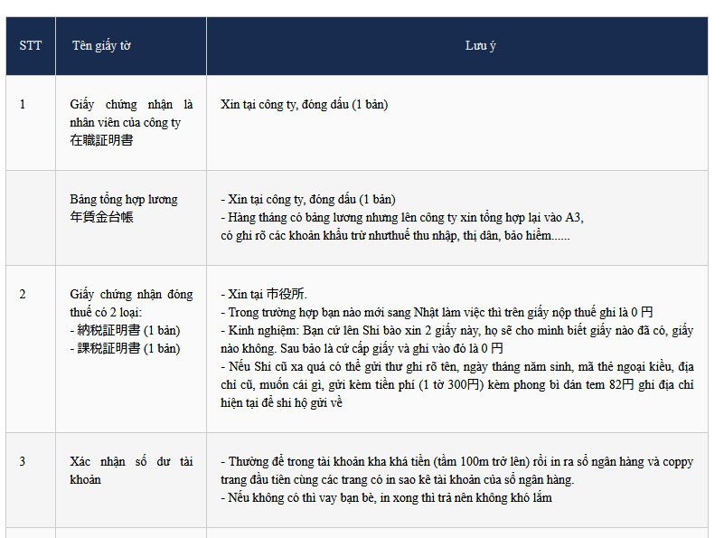 Giấy tờ người bão lãnh sang Nhật cần chuẩn bị
