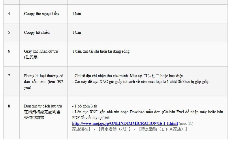 Chú ý: Các bạn cần có một bộ đơn xin cấp tư cách lưu trú (在留資格認定証明書交付申請書) theo quy định của Nhật: