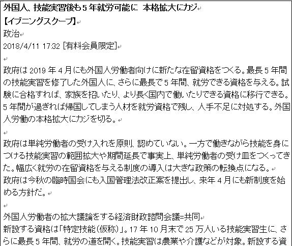Ngày 11/4 vừa qua, một thay đổi lớn trong luật về tiếp nhận thực tập sinh kỹ năng đã được đưa ra trong cuộc họp của Hội Đồng Tư Vấn Kinh Tế Tài Chính Nhật Bản. Theo đó, thì ngay trong tháng 4, chính phủ Nhật Bản có thể sẽ mở rộng thêm một loại tư cách lưu trú mới dành riêng cho lao động nước ngoài, là 特定技能 (tên tạm đặt).