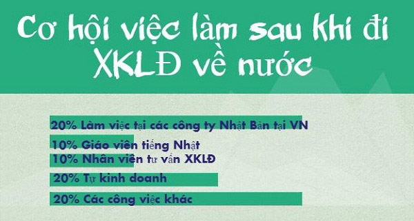 Ngoài làm việc tại các công ty Nhật tại Việt Nam, bạn cũng có thể làm việc tại những công ty chuyên về XKLĐ Nhật Bản, công ty về xuất nhập khẩu hàng hóa...với mức lương từ 12-15 triệu. Hoặc với một số vốn khá lớn tích lũy tại Nhật, bạn cũng có thể tự kinh doanh.