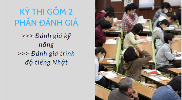 Kỳ thi năng lực tiếng Nhật JLPT: kì thì này được tổ chức tại Việt Nam 2 lần/năm, có 5 cấp độ: N1, N2, N3, N4, N5, đạt đủ yêu cầu theo đơn hàng kỹ năng đặc định, người lao động cần đạt được trình độ N4 trở lên.